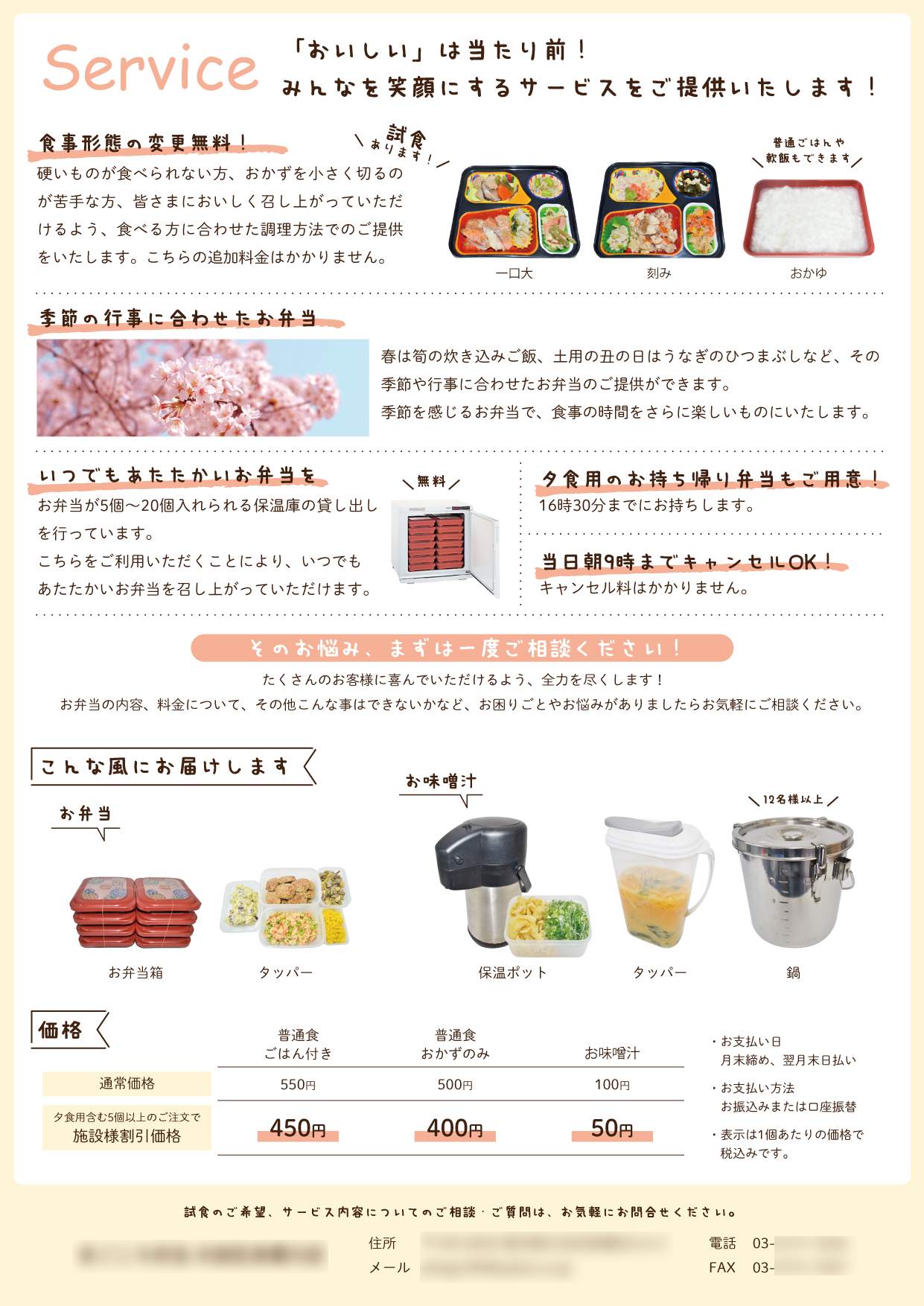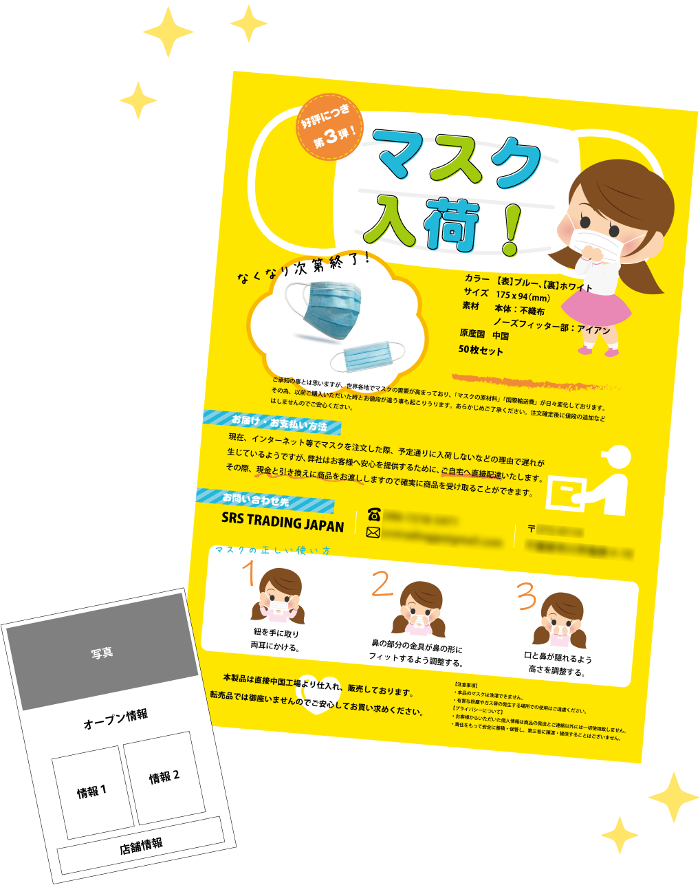 | 価格 | デザイン+印刷100部+送料 〔片面〕22,000円 6,930円 〔両面〕12,870円 |